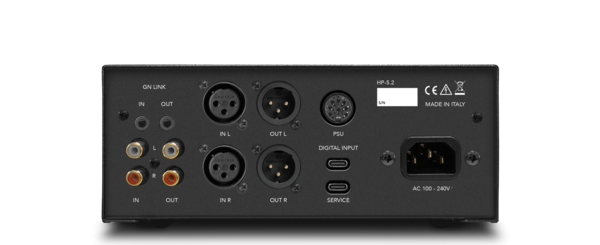The HP-5.2 is equipped with balanced (XLR) and unbalanced (RCA) inputs, plus Bluetooth 5.2 HD aptX and a USB-C digital input. These digital connections allow for direct streaming from smartphones, tablets, or computers.