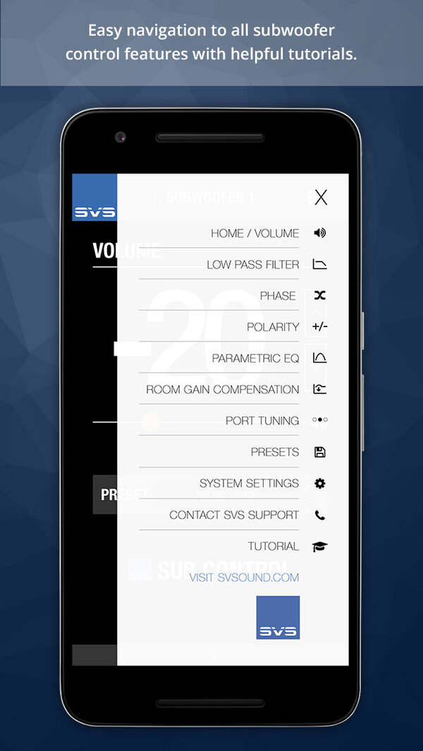 Convenient subwoofer tuning and control from the comfort of your favorite seat. Works via Bluetooth with Apple iOS, Google Android, and Amazon Fire platforms.