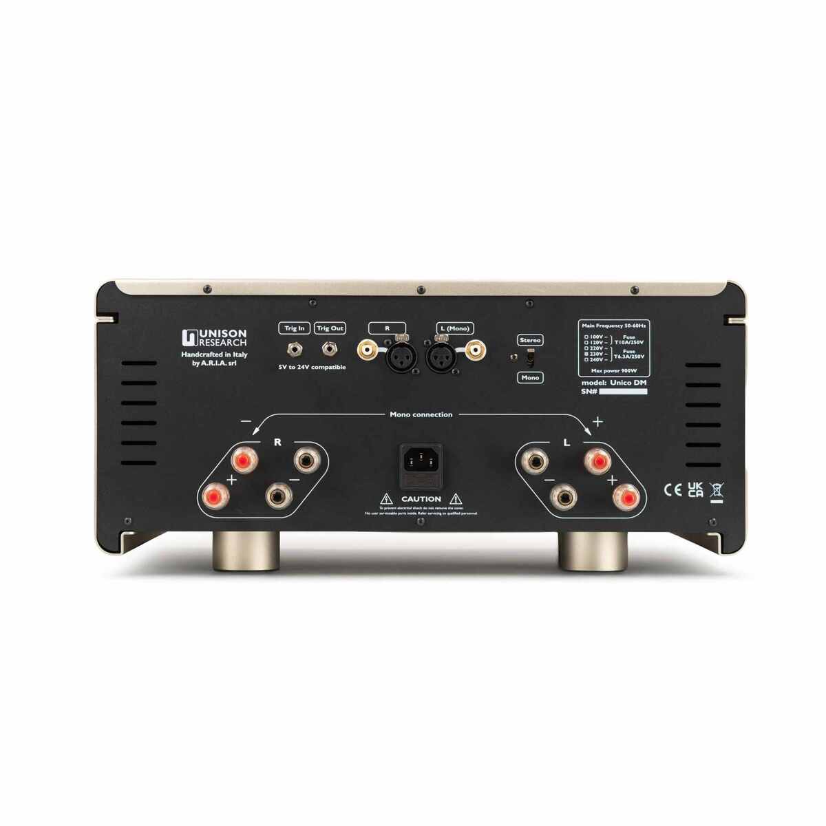 With Unico DM v2, Unison Research® introduces the A.S.H.A. technology for the first time, marking a significant technical evolution that forms the foundation of the new Unico series developed around this innovative solution. From this technology comes a new and exclusive power-stage configuration, named Class A-AB, which combines the unmistakable musicality of Class A with the efficiency and reliability typical of Class AB.