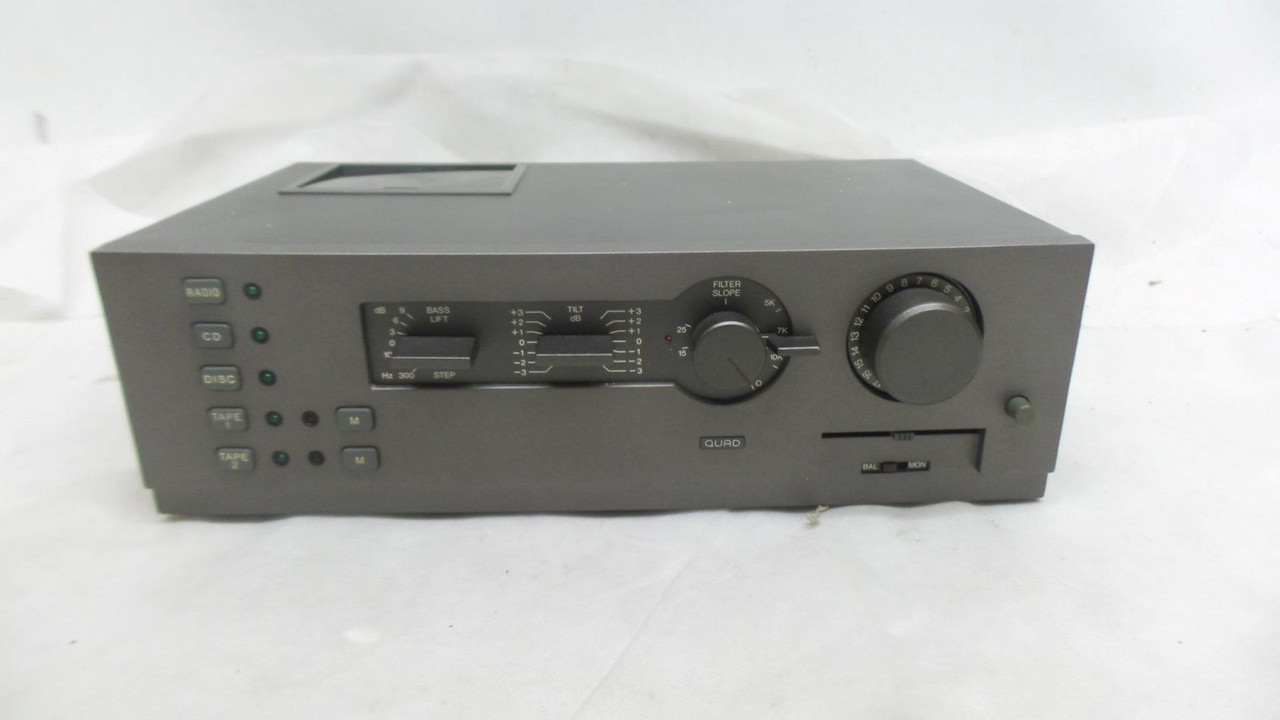 Sehr gut.Alt, aber funktionstüchtig, Gehäuse und Vorderseite und Tasten von Quad auf spätere graue Version aktualisiert, haben keine eingebaute Phonostufe.