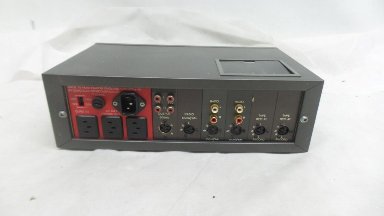 Very good.Old, but in working order, casework and front and buttons updated by quad to later grey version does not have a built in phonostage.