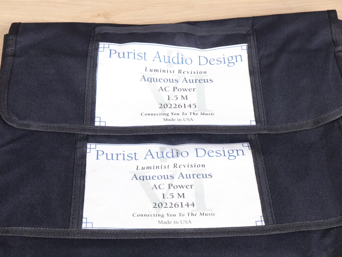 Two Purist Audio Design Aqueous Aureus (Luminist Revision) high end audio power cables in a very good condition. The length of both is 1,5 metre and they have the original connectors (EU schuko wall type and C15 IEC). Serial numbers are 20226144 and 20226145. Retail price is 2.195 euro, now for 1.199 euro for one Aqueous Aureus cable. The original packaging is included. Check our other listings for more interesting items. Free shipping worldwide!