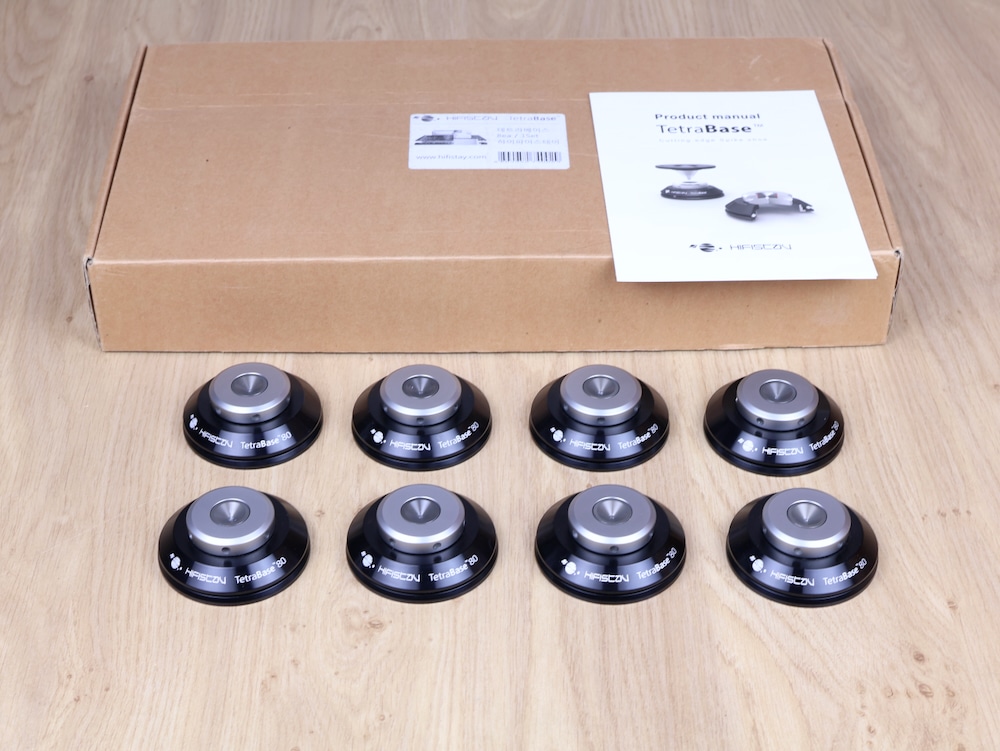 Very rare on the market, almost impossible to find! One set of eight HIFISTAY Tetrabase 80 high end audio spike bases in a very good condition. Retail price is 3.000 euro. The original box and manual are included. Check our other listings for more interesting items. Free shipping worldwide!