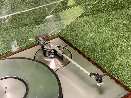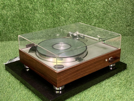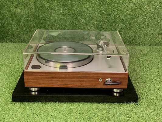 Visually, it is certainly one of the simplest and most beautiful vintage turners ever. The Luxman PD 300, as well as many others, was built by Micro Seiki, the high-end vintage turntable manufacturer ever. Installed is an Audio Technica AT-1100 from 1980Technically overhauled and visually top preserved!Further information (without guarantee):The Luxman PD-300, which was launched in Japan at the end of 1980, was the second Luxman turntable to be equipped with the VDS (Vacuum Disc Stabilizer) system. In contrast to the Luxman PD-555, which was introduced at the beginning of 1980, the PD-300 has a manual pump that can be operated with a lever on the front. Like all large Luxman turntables, the PD-300 was manufactured by Micro Seiki on behalf of Luxman.The manufacturer states that the negative pressure can be maintained for about 35 minutes when playing records. The Luxman PD-300 is a turntable without tonearm, equipped with a manual vacuum plate suction. It was produced in Japan from 1981 to 1985 and is available in silver and wood. The turntable has a power consumption of 15 watts, measures 490 mm in width, 200 mm in height and 390 mm in depth and weighs 18 kilograms. The new price in 1981 was about 163,000 yen in Japan, which corresponds to about 2,500 DM without tonearm and system. With the Elac ESG-796 H 30, the market price was around DM 3,150, according to Stereoplay.The Luxman PD-300 has RCA connectors and is equipped with a belt drive and a brushless and ventless DC servo motor with quartz control. The revs are 33.33 and 45 revolutions per minute, with the rev regulation at ± 3%. The synchronization fluctuations are less than 0.03 WRMS, and the rumble-to-noise ratio is greater than 60 dB according to JIS standard. The turntable is made of 30 cm aluminum injection molding and weighs 3.5 kilograms. The moment of inertia is 500 kg/cm², and the start-up time is 3 seconds. The operation is manual, without tonearm and head.A special feature of the Luxman PD-300 is the built-in manual vacuum plate suction, which ensures that the record is glued to the turntable by a vacuum generated and any unevenness of the surface is eliminated. The turntable's chassis, which measures 490 x 390 x 200 mm and weighs 18 kg, has been crafted in the typical Luxman style, with a brushed aluminum plate embedded in a wooden frame made of pine plywood. The PD-300 and the other models in this series are characterized by the use of the VDS system, which ensures an even support of the record, thus improving the sound quality.