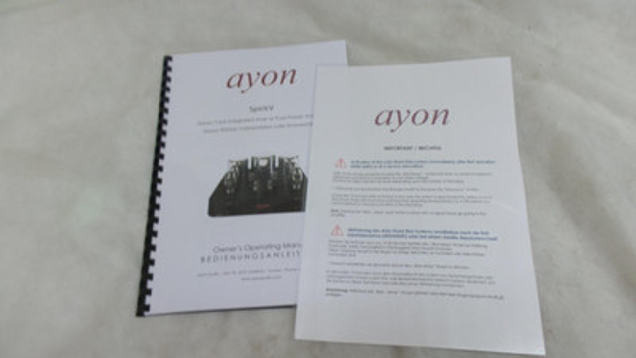 Excellent and boxed with remote.Tubes are almost new. 12 month guarantee.The Ayon Audio Spirit V Integrated inspires the admiration and loyalty of Audiophiles worldwide. Styled to fit a new, modern design with unsurpassed audio quality.The Pure Class A Spirit V is a new generation of a fully balanced design, vacuum tube KT150 stereo integrated power amplifier, 70+70 Watts RMS, Pentode, Triode operation. It took years of development and refinement resulting in unique minimalist true balanced circuit topology to produce an accurate and seductive holographic soundstage. Musical finesse with fine details and powerful performance has been combined, without compromise, into one convenient chassis with affordable pricing. We are confident that the value and musical performance will again set a new musical experience in high end audio.The new Spirit V is not simply updated version of the Spirit III; it is a totally new re-design, new system processing and protection circuit boards. All the gain and driver stages have been also re-designed and optimized, providing for the shortest signal path and direct signal flow. The new volume control is incredibly accurate, the new driver stage choke and the new output transformer has improved stability by 100%; as well as many other design modifications. The result is a flagship at an affordable price. A fast tight bass, wide open three dimensional midrange, super smooth highs that do not roll off. The transparent, holographic soundstage are the strengths of this remarkable integrated amplifier.