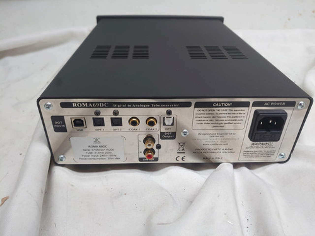 Excellent.Product DescriptionSynthesis Roma 69DC DAC is designed to match the premium Roma valve audio range, but is also an excellent choice to match with other hi-fi separates. This DAC can be used as the heart of a digital system. It has two optical inputs as well as two coaxial inputs. There is also a USB port for external hard drives. It can also handle hi-res files including PCM and DSD files. As it features a valve output stage, the 69DAC DAC offers great musicality and a smooth output that many other DACs cannot reproduce. The DAC chip is hi-end and there are more digital inputs than is usual for a stand alone DAC. The power supply has an oversized transformer as well as hi-grade polypropylene capacitors in the signal path.Premium DAC chipThe 69DC DAC uses the high-end Asahi Kasei AK4495S DAC chip. It is also a dual mono design with a valve output. As a result, the output impedance is low and the bandwidth massive. You get the best of both digital and analogue technologies.Another bonus is the dedicated headphone amplifier. Rather than being an afterthought and tick on the features list, its designed to match the performance of the rest of the unit for the best possible sound.Hi-grade power supplyThe DAC uses an oversized shielded power transformer. This reduces interference and noise, for the best possible signal. Audio coupling is performed by high-grade polypropylene capacitors that have a long life and will not degrade the sound. Notably, the power supply is fully regulated so that the supply is always optimised for the load current needed.What is a DAC?DAC stands for Digital to Analogue Converter and they are used to convert digital audio signals back into the original audio. There are many grades of DAC. The cheapest are often used in computers and DACs are often built into integrated amplifiers – these are generally good quality, but standalone DACs like this are designed to extract every detail from your music and get the most from your digital sources.There are three main ways of getting your digital audio signal into the DAC - coaxial, optical and USB. Coaxial uses a traditional wired connector. Optical uses a fibre optic cable with a special connector. Finally, USB can be used to connect an external drive or Laptop. More advanced DACs can have streaming support such as built-in Wi-fi and Bluetooth. There are also a complicated array of file types and formats..File types?The earliest digital signals came from CD players. This format is known as PCM and is sampled at 44kHz. Later hi-res CD formats came along, this type of signal is known as DSD or Direct Stream Digital. DSD is used for SACD. Most stand alone DACs can play both types.There are also a range of file types that are used to store music, such as Mp3 and FLAC. Some of these are classed as lossless. There are also proprietary file types such as AAC, this is used by Apple. Finally the Firmware of a DAC can usually be upgraded, so that it will always be able to handle newer file types