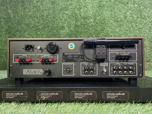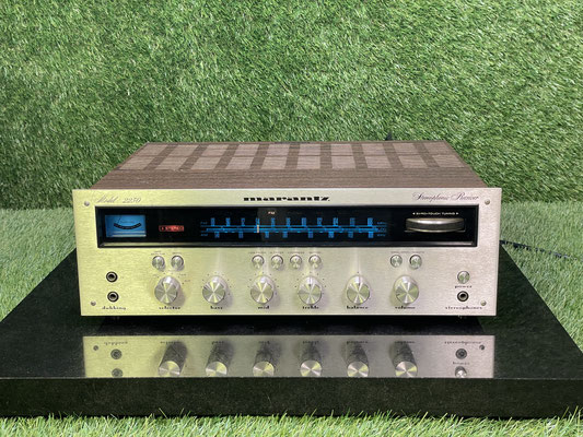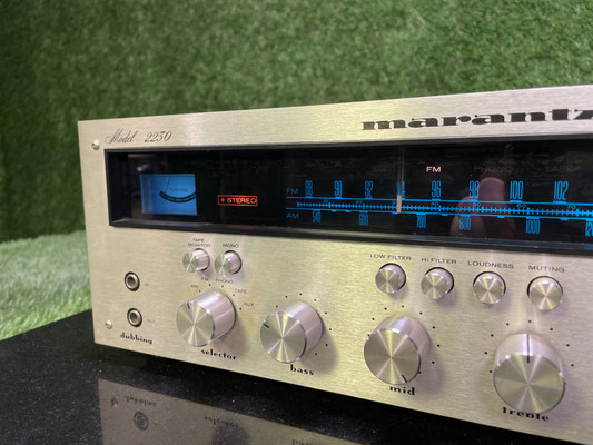 Technical data and information (without guarantee): The Marantz 2230 is a legendary stereo receiver from the early 1970s and embodies the typical, warm-musical sound of classic Marantz devices. Its solid aluminium front with a blue illuminated scale, the characteristic toggle switches and the solid workmanship make it one of the most sought-after vintage receivers to this day.With an output power of around 2 × 30 W into 8 ohms, the 2230 offers amazing dynamics and depth of sound for its power class. The discrete power amplifier provides stability, warmth and fine-grained musicality – ideal for classic speakers of the 1970s and 1980s. Its built-in phono preamp delivers excellent results with MM systems, making the 2230 an excellent choice for vinyl lovers as well.This specimen has been carefully checked, cleaned and is technically fully functional. A piece of hi-fi history with timeless design and authentic sound character.Further information (subject to change):Manufacturer: Marantz (Japan / USA)Model: 2230Power: approx. 2 × 30 W into 8 OhmsFrequency response: 20 Hz – 20 kHz (±1 dB)THD: < 0.3 %Connections: Phono, AUX, Tape 1/2, FM/AM tunerYear of manufacture: approx. 1972 – 1974Dimensions: approx. 440 × 150 × 370 mm (W × H × D)Weight: approx. 13 kg