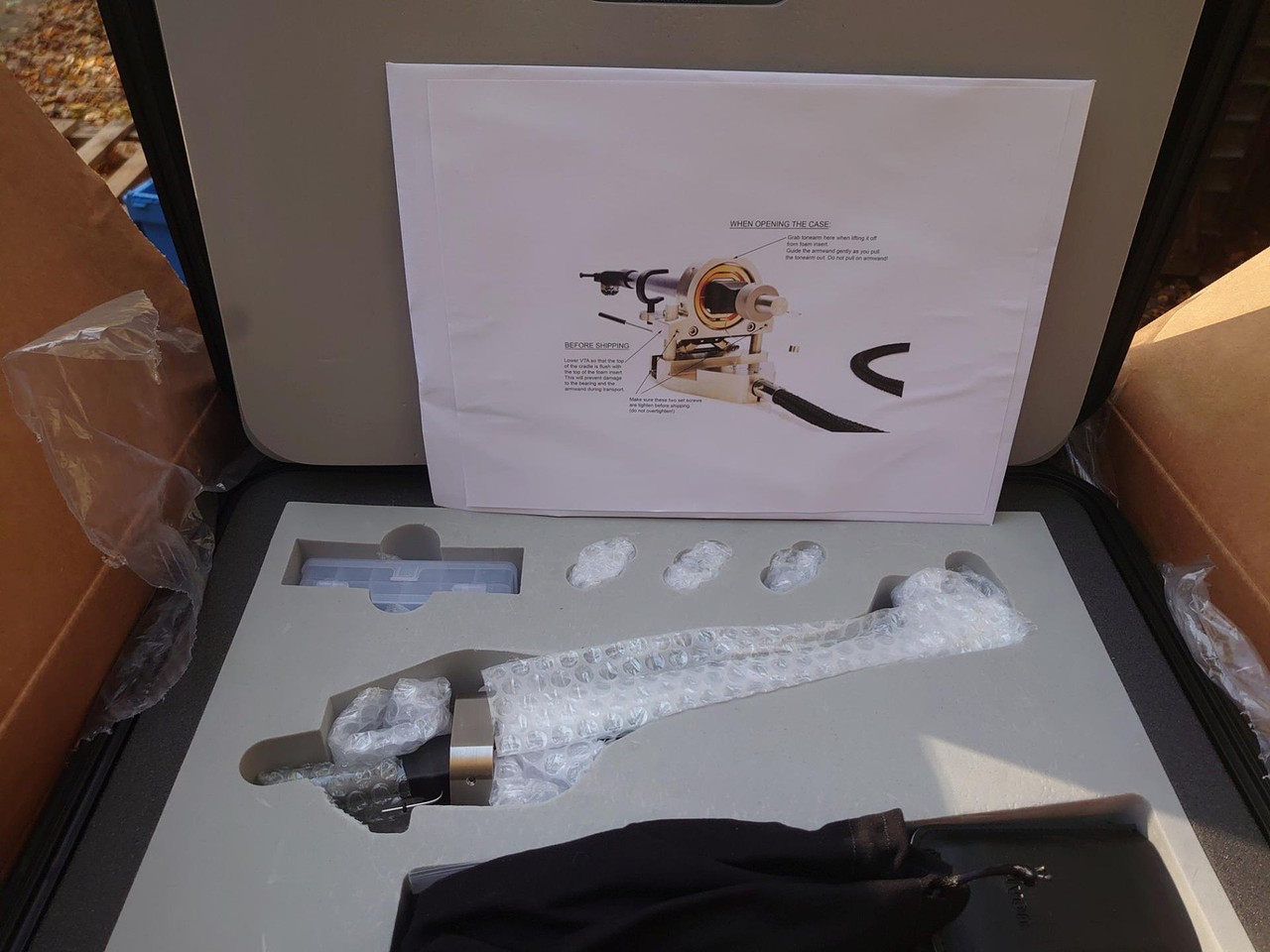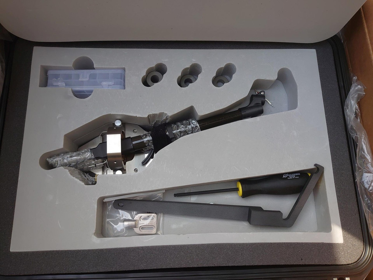 Very good, new old stock, no cables.Quote from a review:The first second the needle was dropped, I noticed immediately the energy, the weight, it was like the gain was augmented about 2-3db so I had to turn down the volume on K15 to adjust to that.The bass was ridiculously good: deep, full, punchy and fastThat extends to the mids, human voices are sexy as hell; I can clearly "see" the body of the cello in a good recording which is very hard to achieve for any audio system…The image was as stable as it can be, it gives you a sense of ease because of thatIt was musical as heaven So, I know what you guys are thinking "How does it compare to the Thales Statement? And who's this arm for?" isn't it? Hahaha!I'd have to say they are both sitting at the very top of the food chain as to tonearms. In terms of build quality, both are beautifully built and maybe thales has the slight edge due to the fact that it is made in Switzerland, however Tosca's finish is definitely among the highest by any standard and it feels more robust and solid. So in a nutshell this arm is for those who like a "solid foundation" of music reproduction, it might not be as good as the statement in terms of "high extension" and "tracking accuracy", however if authoritative bass, sexy mids, and an overall musical representation is what you want, go for the Tosca and you won't regret.