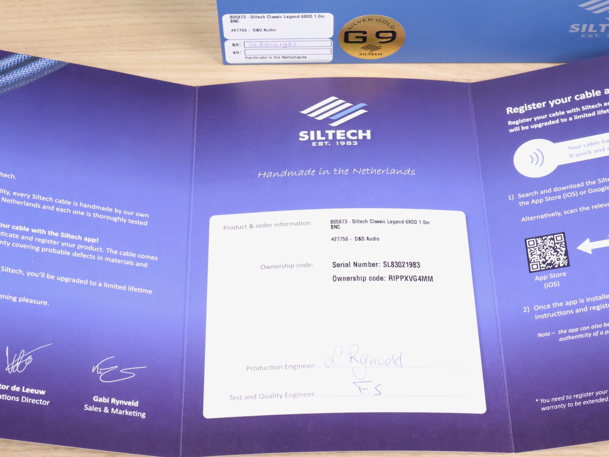 Siltech 680D Classic Legend G9 highend silver-gold digital interconnect BNC 1,0 metre