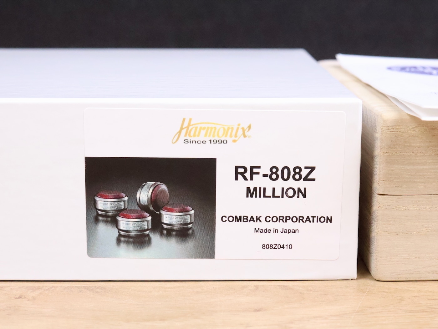 One set of four Harmonix RF-808Z Million Maestro high end audio tuning feet in a fantastic condition. Serial number is 808Z0410. Retail price is 2.250 euro for the set of four. The original wooden and outer box are included. Check our other listings for more interesting items. Free shipping worldwide!Experience to listen to RF-808Z Million Maestro, you are going to become dumbstruck. It is very musical, the separation of soundstage is exceptional and it is well balanced and natural. The instruments are so cleared and delineated. Smoothly extended Lower octaves is smoothly extended. The dynamic is impact and very deep. Voice is so articular and lifelike without nasal, sibilance, metallic character that is so often encountered in systems. RZ-808Z Million is truly serious discerning music lover’s choice.