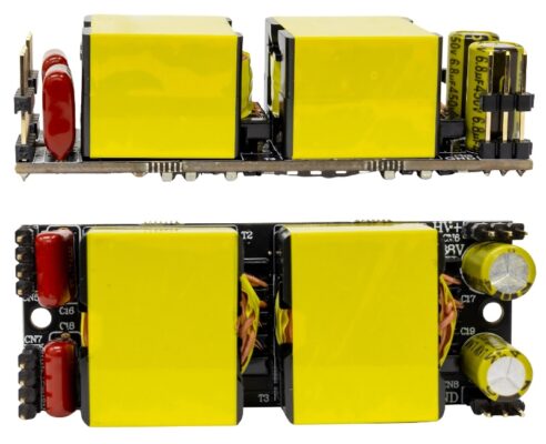 Beyond the PFC stage, the IDA-9 employs new-generation GaN semiconductor modules for the critical power conversion stages that supply the amplifier circuits. These modules showcase the remarkable capabilities of GaN technology, with each individual module maintaining the same compact 75 × 30 × 25 mm footprint while delivering up to 250 watts of output power and instantaneous peak current capabilities of up to 10 amperes.