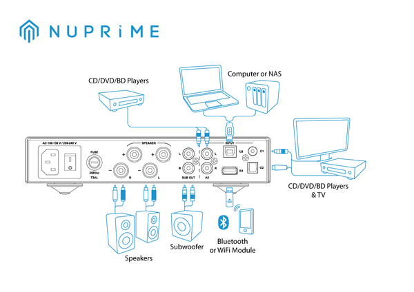 7.USB Audio Compatibility – Includes dedicated NuPrime device driver software for Windows systems, while Mac users can utilize standard driver software for plug-and-play operation.